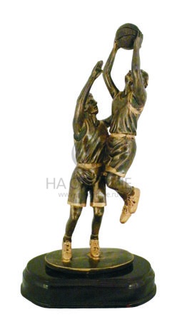 Литая фигура из металлизированного пластика на металлическом каркасе. Деревянное основание в комплекте.