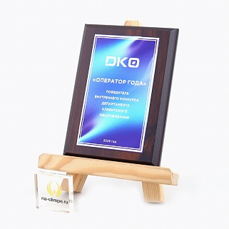Элегантная плакетка из натурального дерева в комплекте с металлической пластиной серебристого цвета.