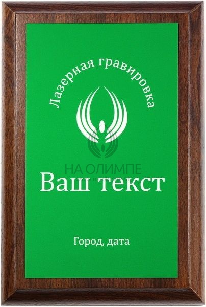 Плакетка из натурального дерева. В комплекте с пластиковой пластиной зеленого цвета. После гравировки раскрывается белым цветом. Нанесение любого количества символов и изображений включено в стоимость.