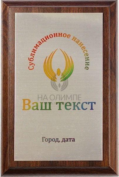 Плакетка из натурального дерева. В комплекте с металлической пластиной серебряного цвета. Полноцветное нанесение любого количества символов и изображений включено в стоимость.