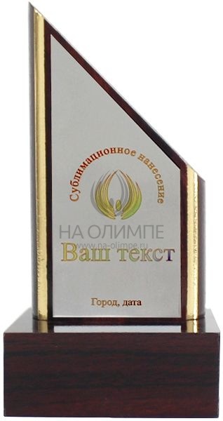 Плакетка из натурального дерева. В комплекте с металлической пластиной серебряного цвета. Полноцветное нанесение любого количества символов и изображений включено в стоимость. Постамент входит в комплект.