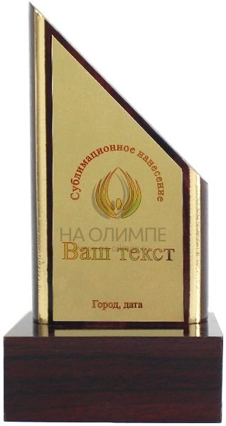 Плакетка из натурального дерева в комплекте с металлической пластиной золотистого цвета. Полноцветное нанесение любого количества символов и изображений включено в стоимость. Постамент входит в комплект.