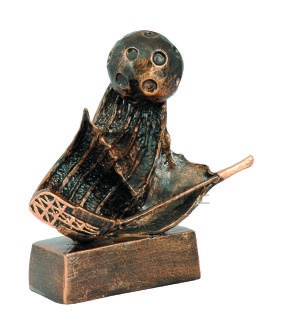Литая фигура из металлизированного пластика на металлическом каркасе. Деревянное основание в комплекте.