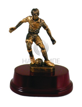 Литая фигура из металлизированного пластика на металлическом каркасе. Деревянное основание в комплекте.