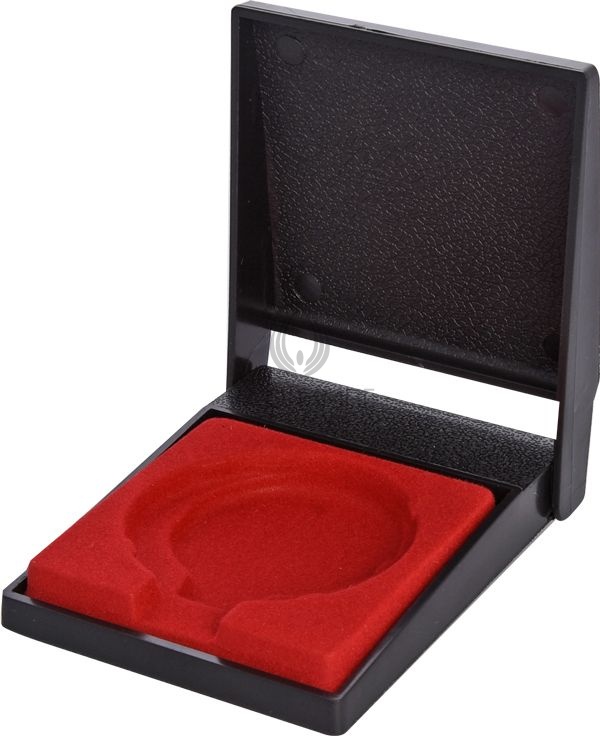 Футляр пластиковый. Ложемент красного цвета под бархат одинаково хорошо подойдет для медалей диаметром 40 и 50мм.