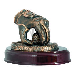 Литая фигура из металлизированного пластика на металлическом каркасе. Деревянное основание в комплекте.