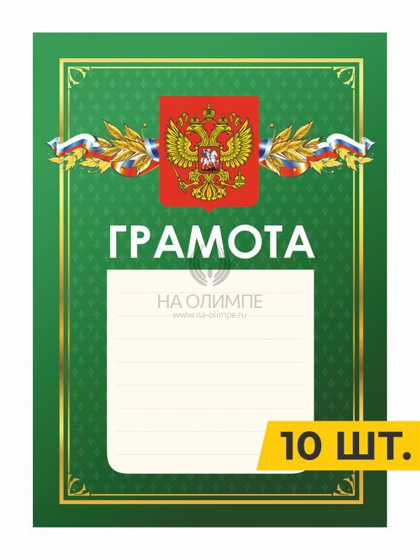 Грамота №10 зелёная (10шт), размеры a4 мм
