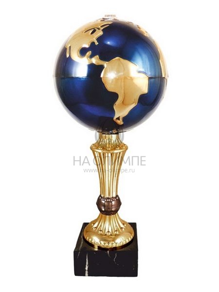 Кубок с чашей в виде глобуса из пластика с креплением под фигурку на основании из мрамора.