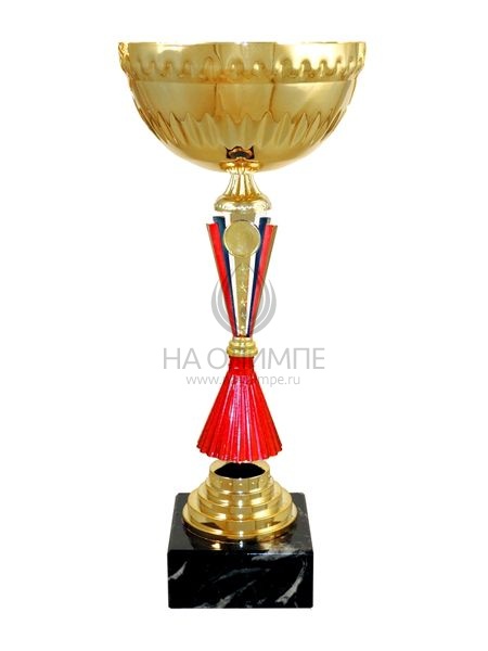 Кубок с металлической чашей и пластиковыми элементами на основании из мрамора.