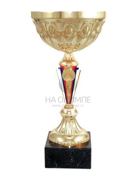 Кубок с металлической чашей и пластиковыми элементами на основании из мрамора.