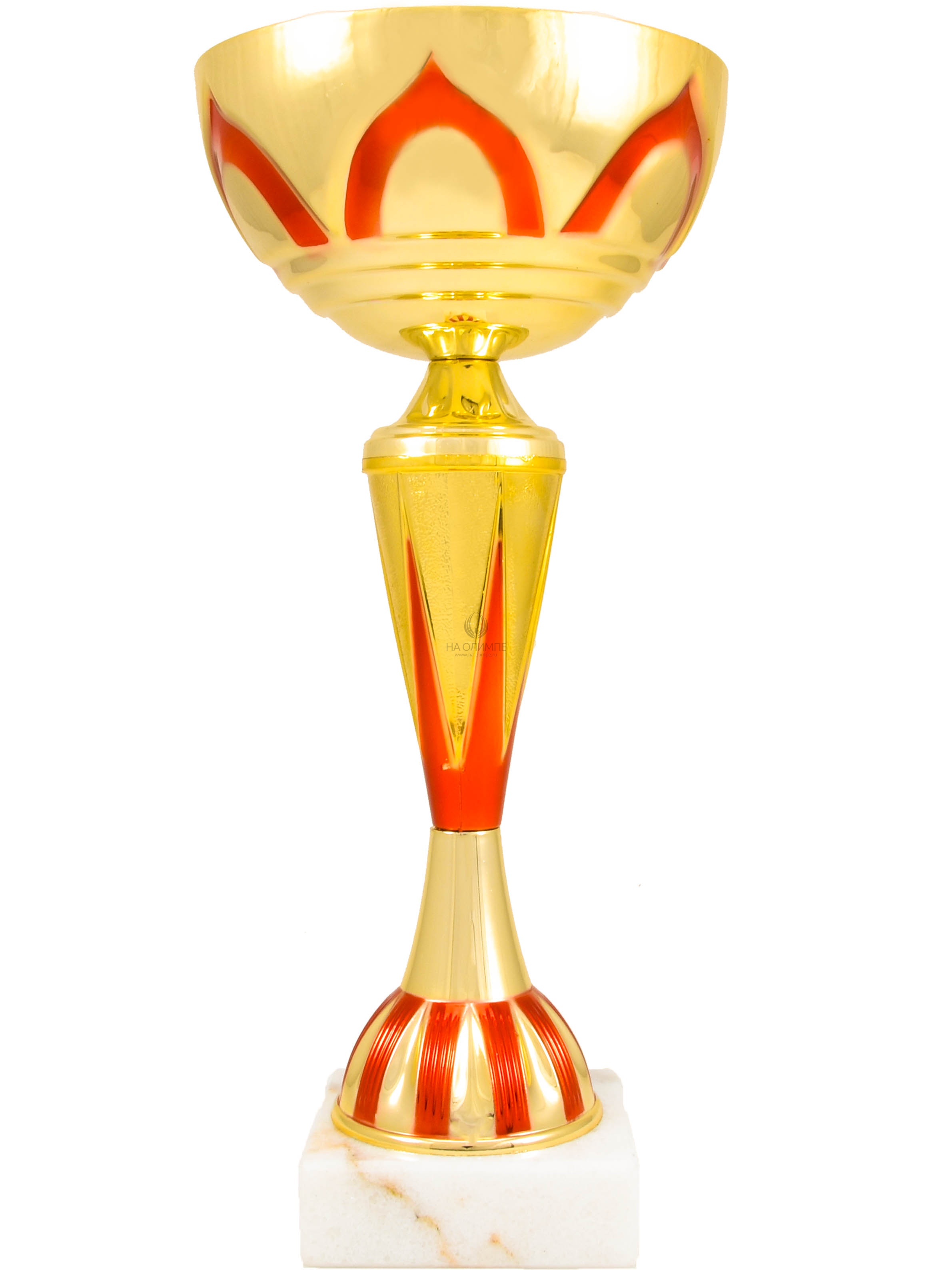 Кубок на основании из мрамора. Представляем вашему вниманию золотой кубок с металлической чашей с красным элементами. Металлическая чаша, сверкающая золотым блеском, придаёт изделию статусность и элегантность. Что действительно выделяет этот кубок, так это яркие красные элементы, изящно вплетённые в его дизайн. Эти акценты символизируют страсть, энергию и стремление к победе. Мраморное основание придаёт кубку вес и стабильность, обеспечивая надёжную опору для самой важной награды. Кубок можно укомплектовать крышкой с фигуркой. Тематические фигурки отражают вид спорта или характер события, на котором происходит вручение. Установив на крышку фигурку «эмблемоноситель», вы можете получить дополнительное место для размещения текста или логотипа. Мраморное основание можно укомплектовать металлической, пластиковой или заливной табличкой с вашим текстом или логотипом. Примеры исполнения нанесения можно посмотреть на фото примеров или в нашей Галерее. Заказ от 1шт. Доставка в любую точку РФ.