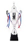 Кубок с металлической чашей, ножкой и крышкой на пластиковом постаменте. Ленточки из полиэстера украшают ручки кубка, но при необходимости их легко можно снять.