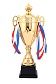 Кубок с металлической чашей на пластиковом постаменте. Ленточки из полиэстера украшают ручки кубка, но при необходимости их легко можно снять.