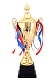 Кубок с металлической чашей на пластиковом постаменте. Ленточки из полиэстера украшают ручки кубка, но при необходимости их легко можно снять.