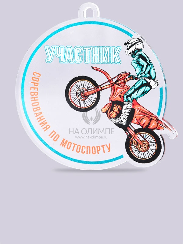 Медаль из акрила 106 Мотоспорт с цветным нанесением, цвет прозрачный