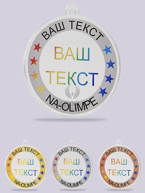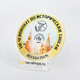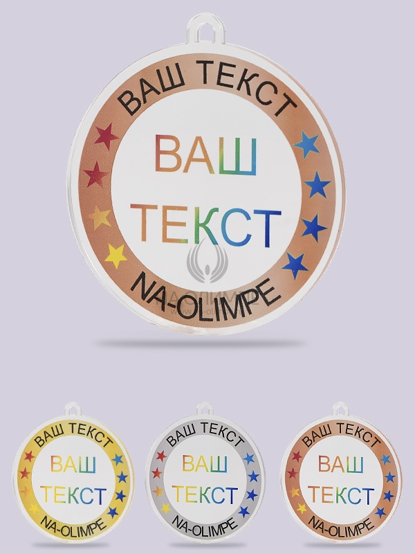 Медаль из акрила с цветным нанесением текста и/или логотипа по Вашему желанию.