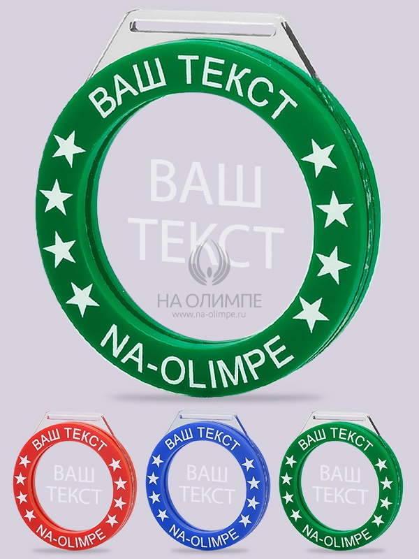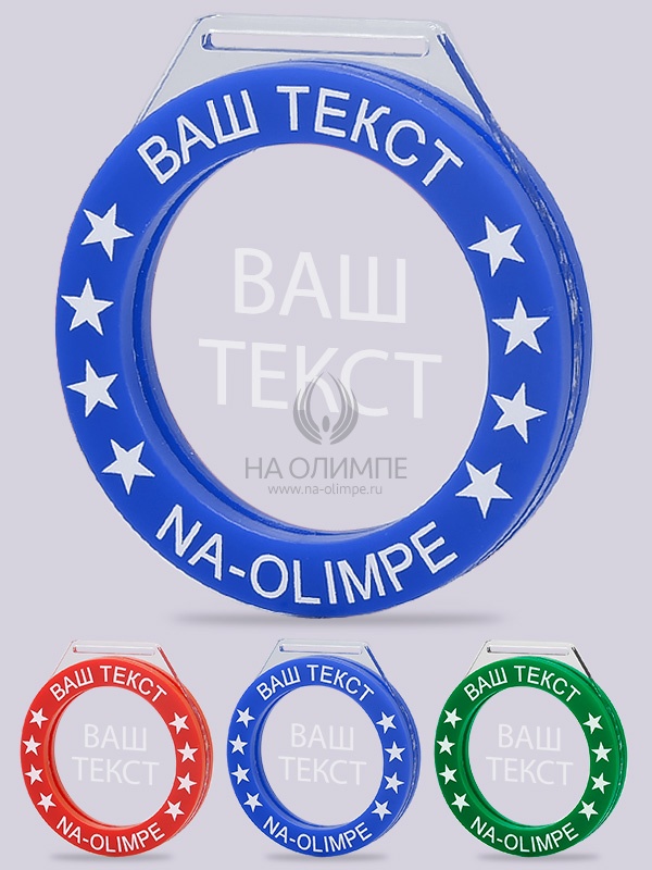 Медаль из акрила с гравировкой по центру и полноцветной печатью по кругу. Нанесение текста и логотипа уже включены в стоимость.