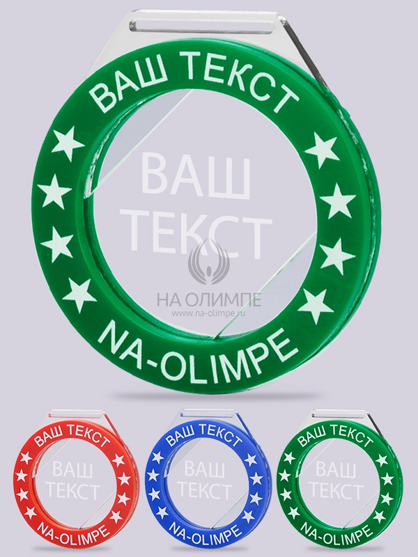 Трёхслойная медаль из акрила с гравировкой по центру индивидуальным полноцветным нанесением по кругу медали.
