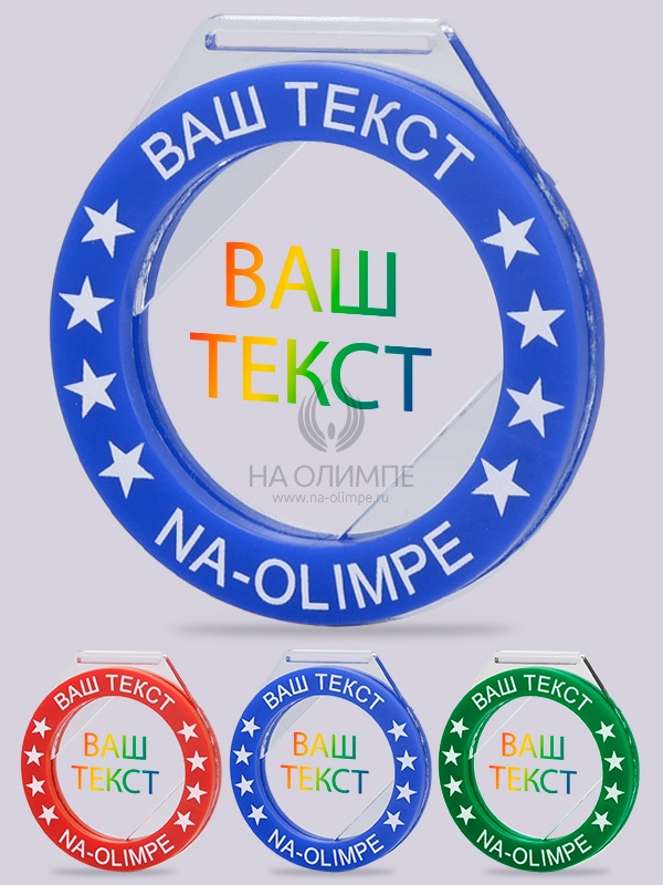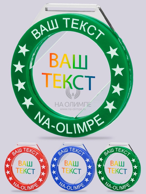 Трёхслойная медаль из прозрачного и цветного акрила с персональным нанесением любого цвета.