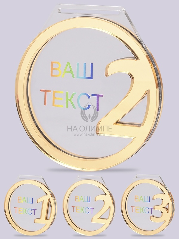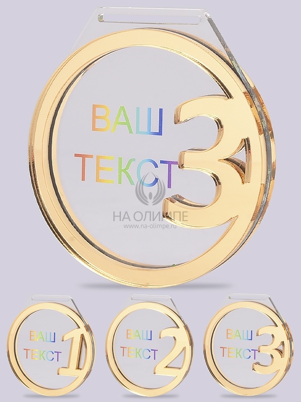 Медаль из акрила с полноцветной печатью. Нанесение текста и логотипа уже включены в стоимость.