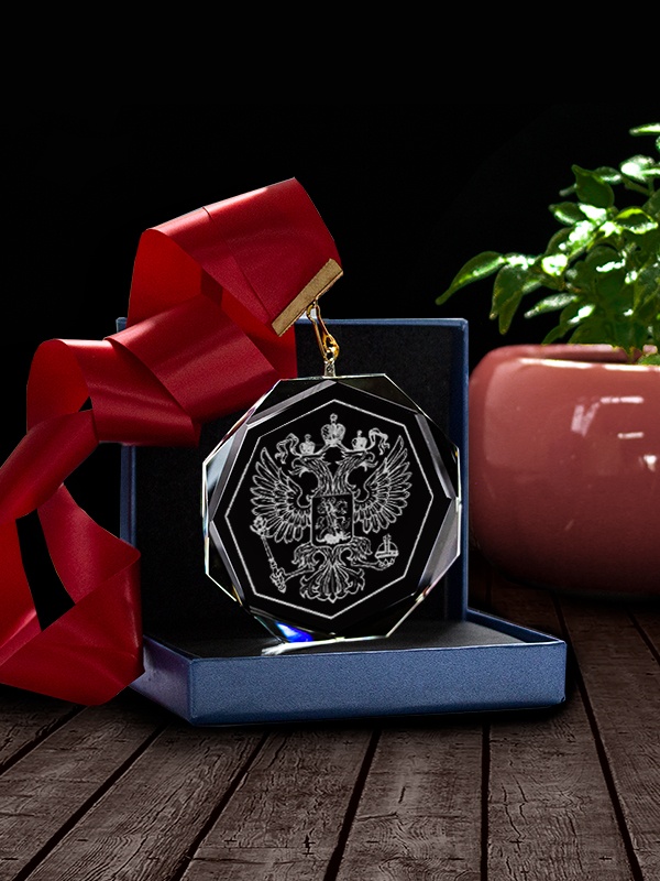 Медаль С58 "Двухглавый орёл" с гравировкой, цвет прозрачный