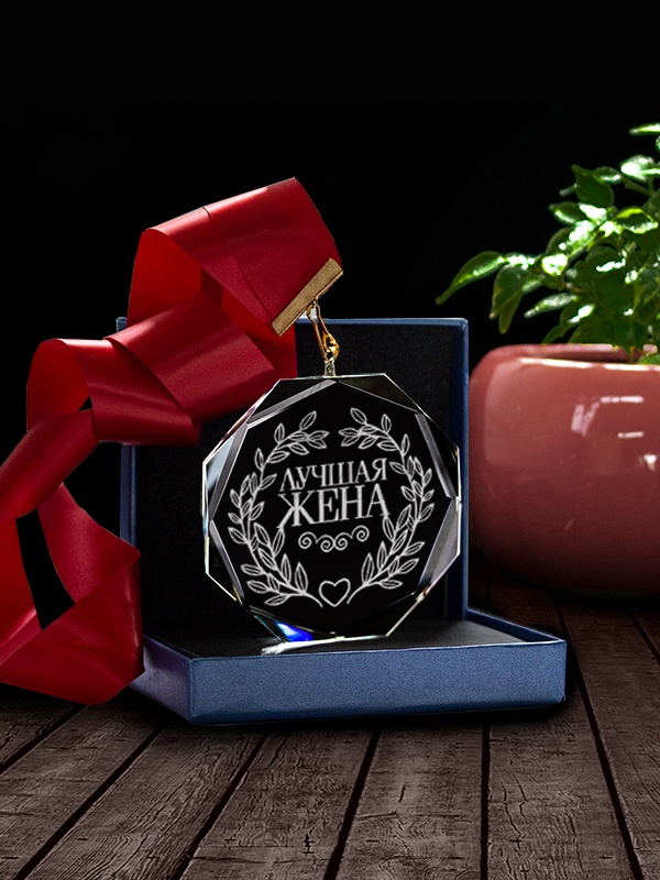 Медаль С58 "Лучшая жена" с гравировкой, цвет прозрачный
