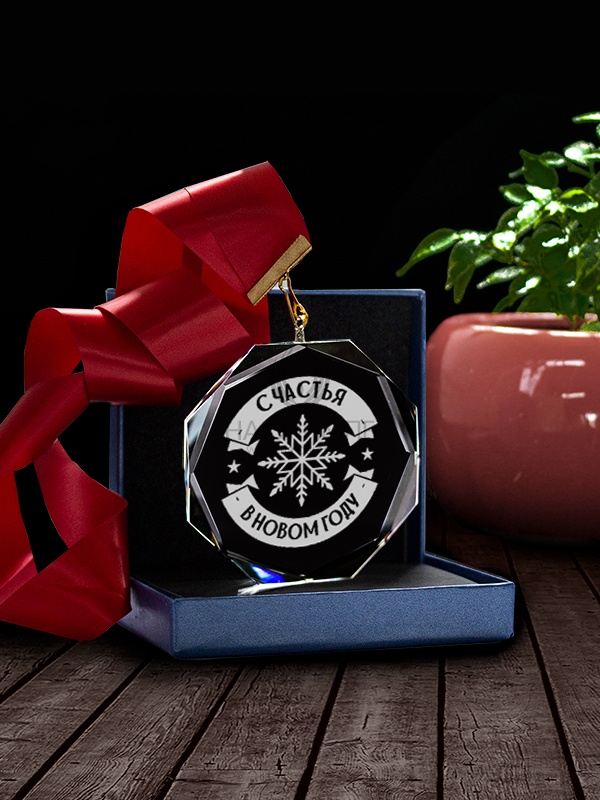 Медаль С58 "Новогодняя" с гравировкой, цвет прозрачный