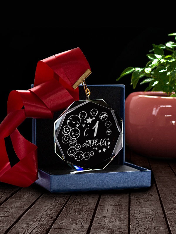 Медаль С58 "С 1 Апреля" с гравировкой, цвет прозрачный