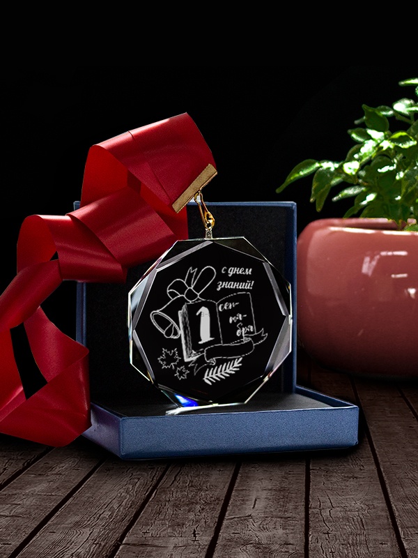 Медаль С58 "С Днем Знаний" с гравировкой, цвет прозрачный