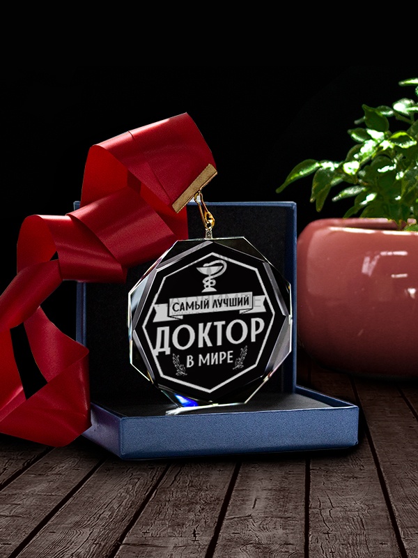 Медаль С58 "Самый лучший доктор" с гравировкой, цвет прозрачный