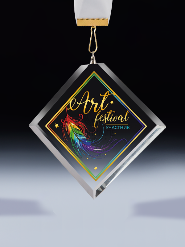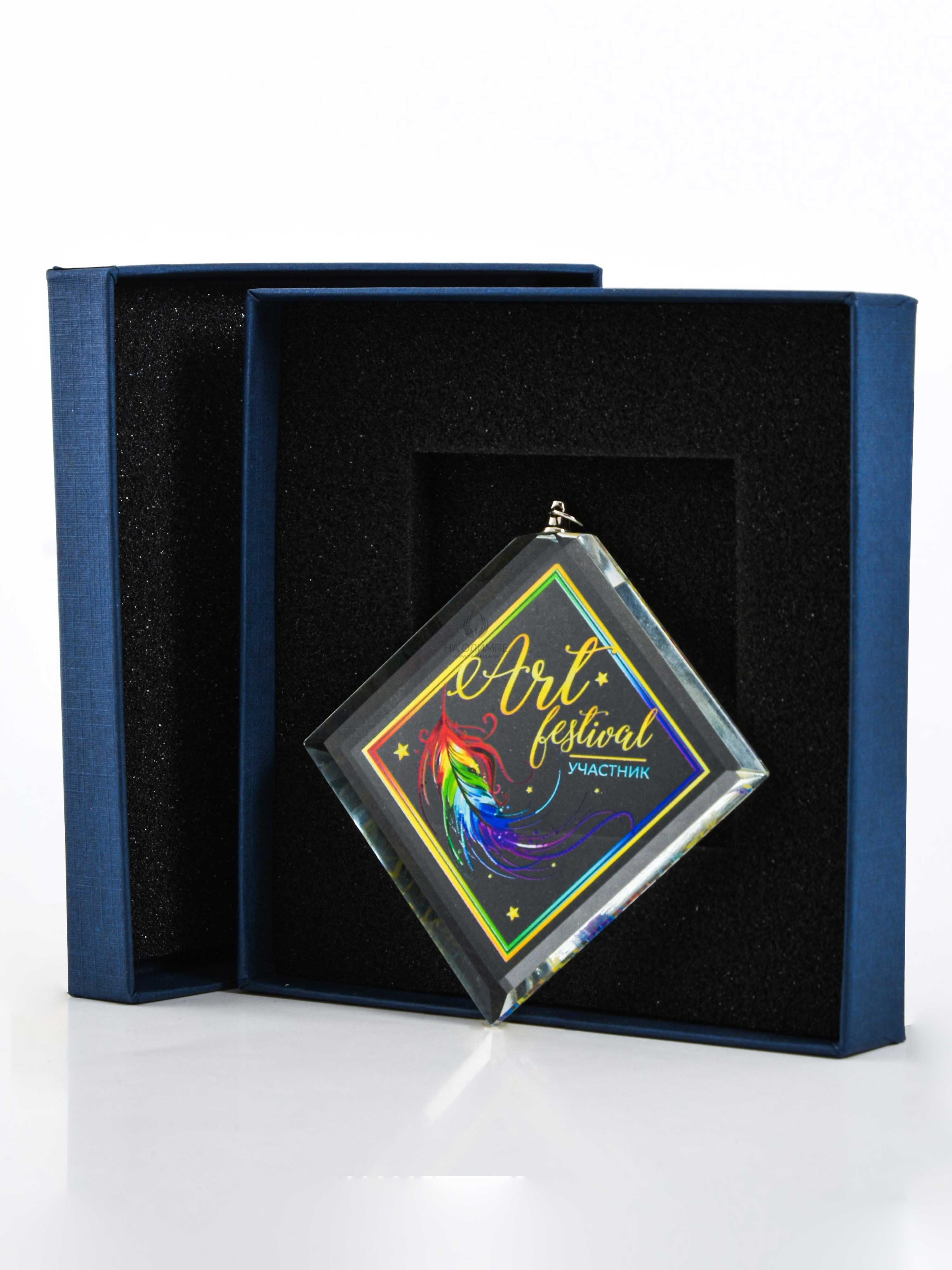 Медаль из стекла, толщиной 8мм с полноцветной печатью. Печать выполняется на uv-принтере уф-отверждаемыми чернилами. Изображение не выцветает и не желтеет со временем. Высокое качество печати позволяет наносить изображения с большой детализацией, любых цветов включая белый. Изображение наносится на обратную сторону медали зеркально, благодаря этому становится возможным оценить толщину материала награды и медаль раскрывается с лучшей стороны. Размер стороны медали 6,7 см. Поставляется в комплекте с подарочным футляром (цвет футляра и подложка могут отличаться), лента в комплект не входит и заказывается отдельно. Вес награды без футляра 82гр.