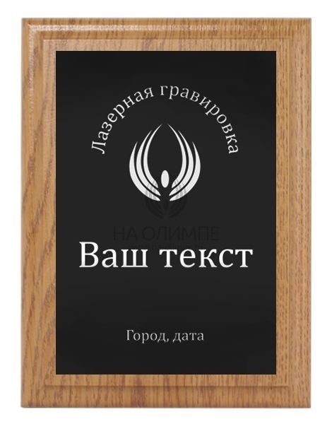 Плакетка H152 дуб с лазерной гравировкой Me 05 Bk/Wt, размеры 200*150 мм