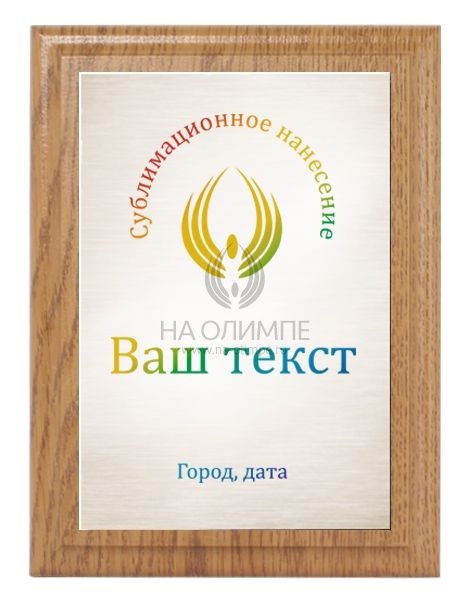 Плакетка из натурального дерева. В комплекте с металлической пластиной серебряного цвета. Полноцветное нанесение любого количества символов и изображений включено в стоимость.