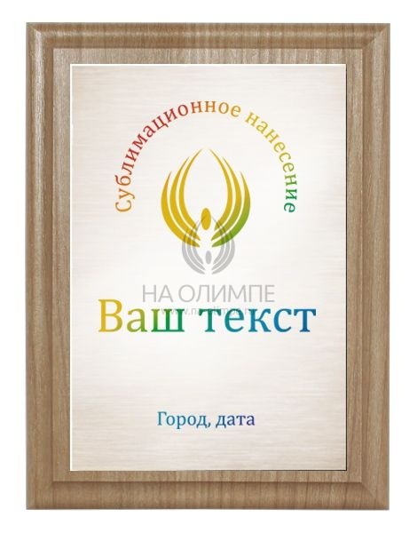 Плакетка из натурального дерева. В комплекте с металлической пластиной серебряного цвета. Полноцветное нанесение любого количества символов и изображений включено в стоимость.