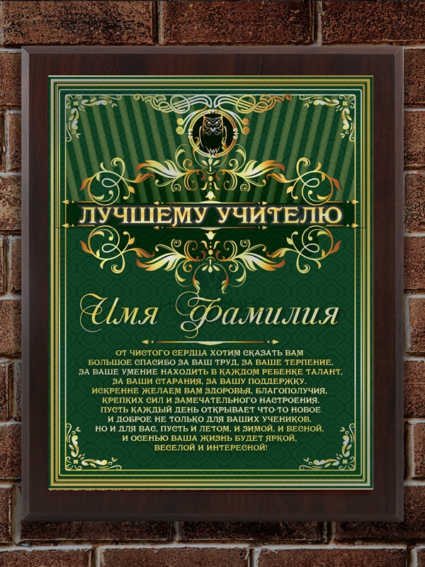 Плакетка "Лучшему учителю", размеры 255*200 мм