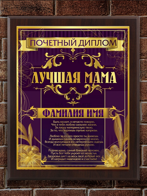 Плакетка "Лучшей маме", размеры 255*200 мм