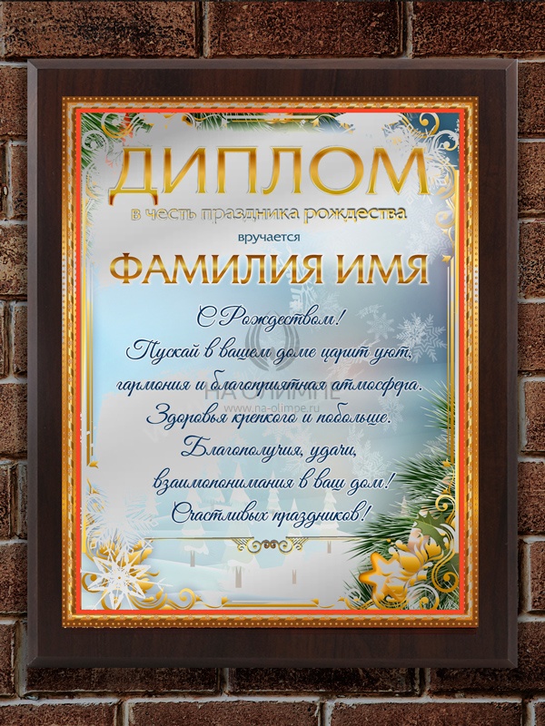 Деревянная плакетка в комплекте с металлической пластиной и готовым текстом.
