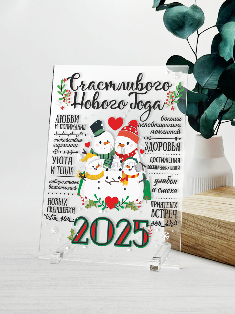 Постер открытка из прозрачного акрила с цветной печатью. В комплект входит прямоугольная пластина из акрила толщиной 3мм с готовым дизайном и две подставки.
