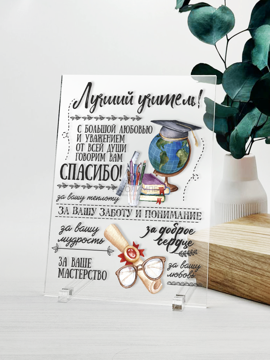 Постер открытка из прозрачного акрила с цветной печатью. В комплект входит прямоугольная пластина из акрила толщиной 3мм с готовым дизайном и две подставки.