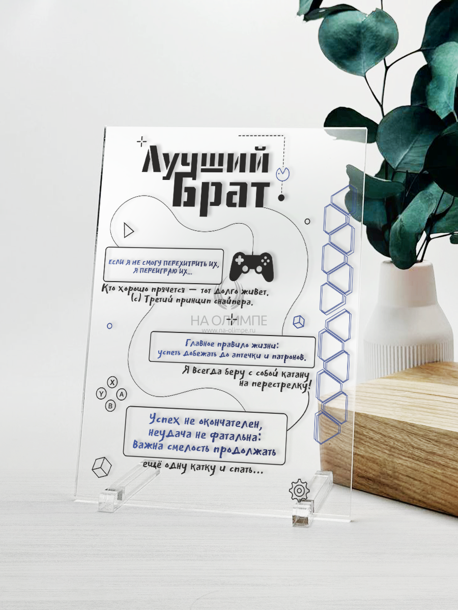 Постер открытка из прозрачного акрила с цветной печатью. В комплект входит прямоугольная пластина из акрила толщиной 3мм с готовым дизайном и две подставки.