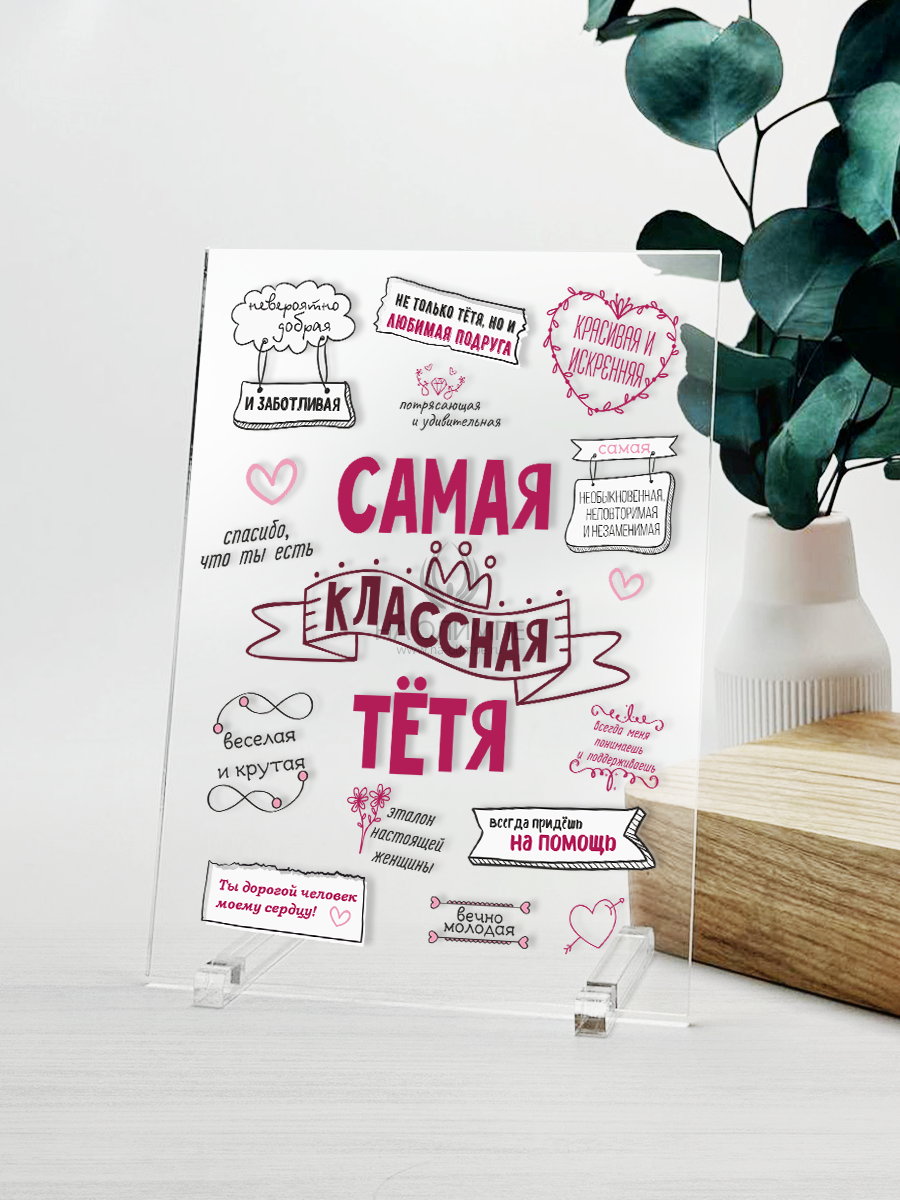 Постер открытка из прозрачного акрила с цветной печатью. В комплект входит прямоугольная пластина из акрила толщиной 3мм с готовым дизайном и две подставки.