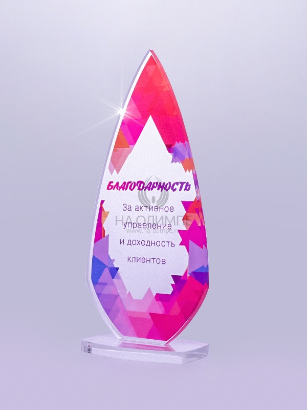 Приз из прозрачного акрила с цветной печатью.
