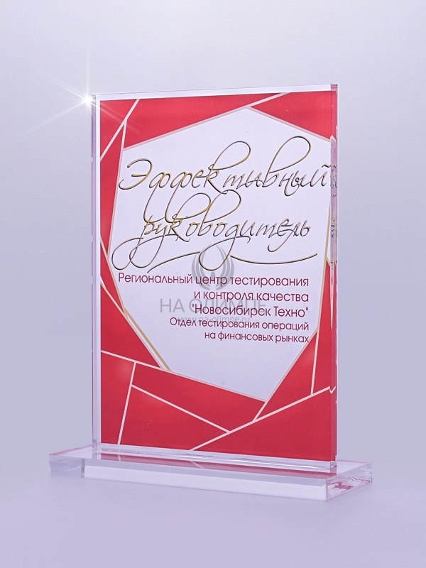 Приз из прозрачного акрила с цветной печатью.