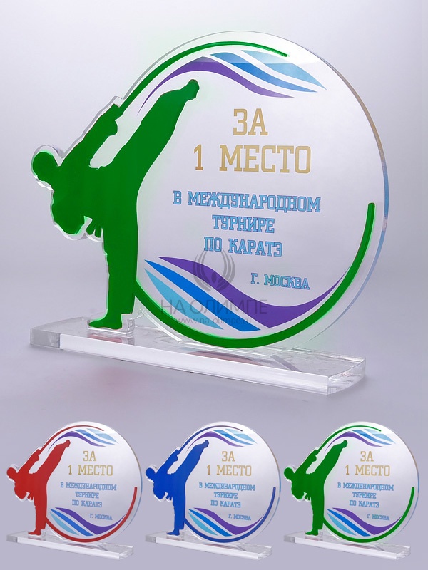 Приз из красного и прозрачного акрила с цветным нанесением.