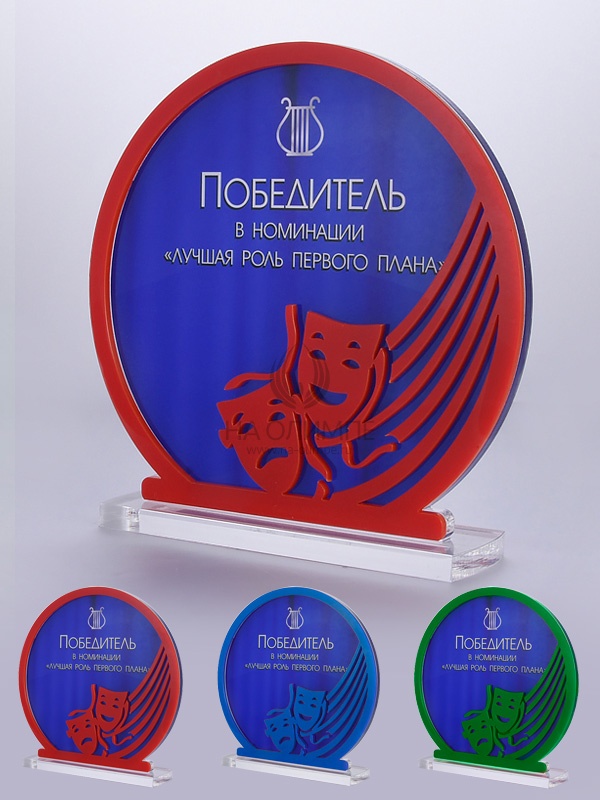 Приз из красного и прозрачного акрила с цветным нанесением.