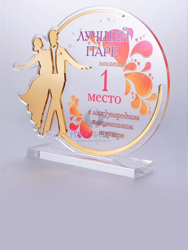 Приз из золотого и прозрачного акрила с цветным нанесением.