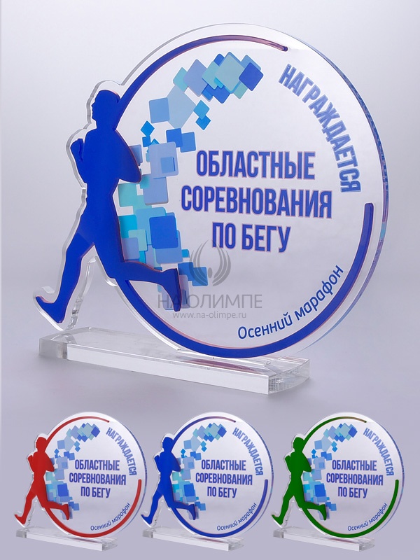 Приз из красного и прозрачного акрила с цветным нанесением.