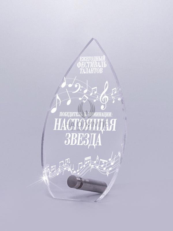Приз из прозрачного акрила с лазерной гравировкой.