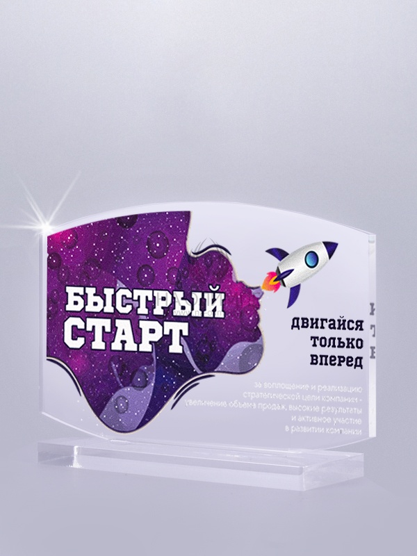 Приз из акрила 32-100 с цветной печатью, высота 10 см