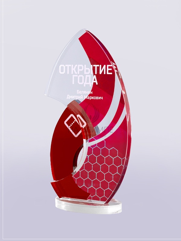 Приз из прозрачного акрила с цветной печатью.